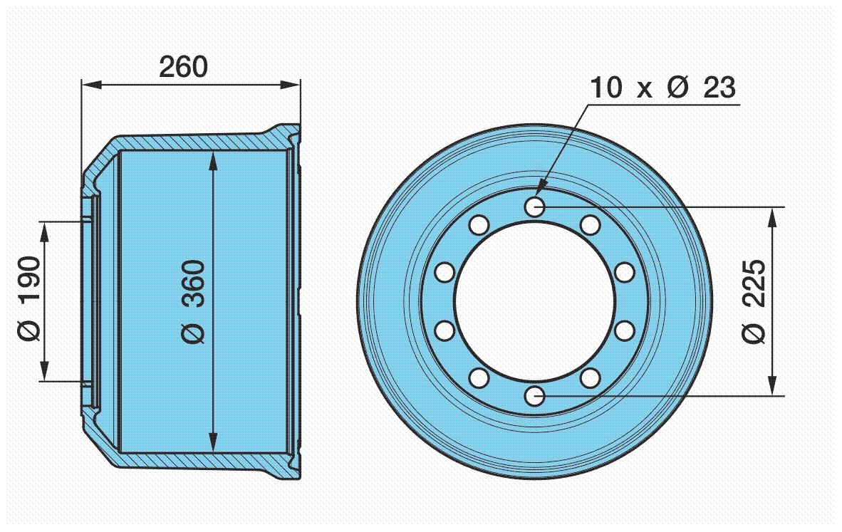 Барабан тормозной BPW 360x200/209 H=260 d=190/225 n10x2...
