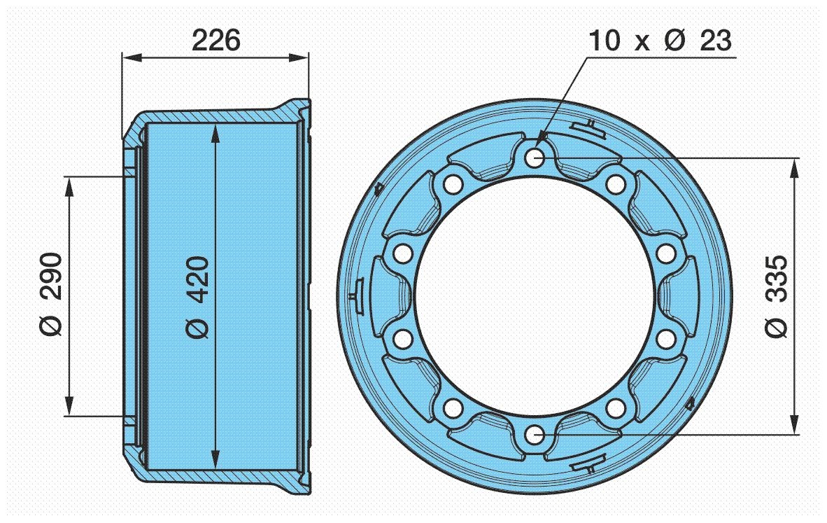 Барабан тормозной MAN 410x220/234 H=300 d=298/335 n10x2...