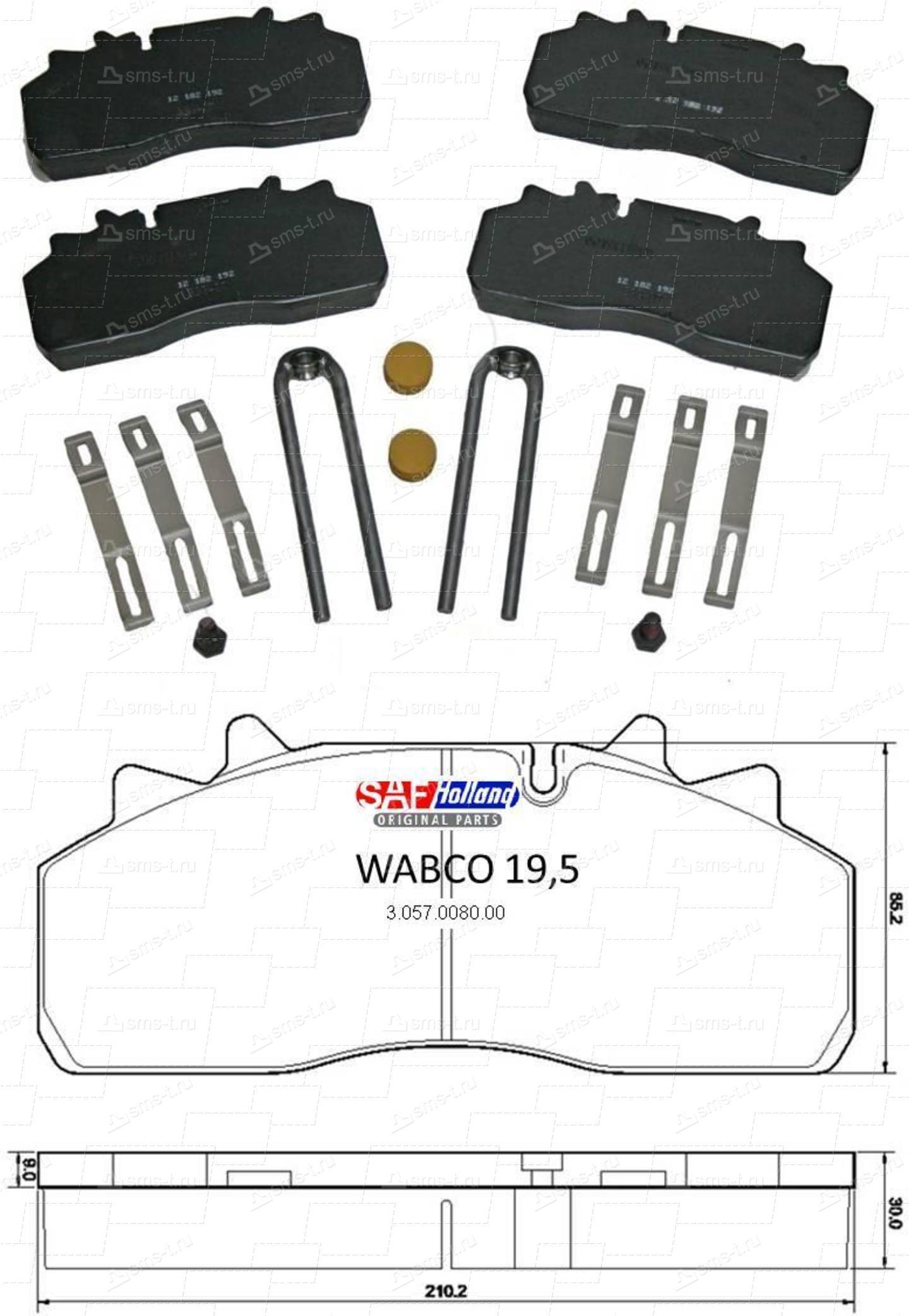 Колодки дисковые 29126 SAF SKRB 9019W 210.5x93x30 (Wabc...