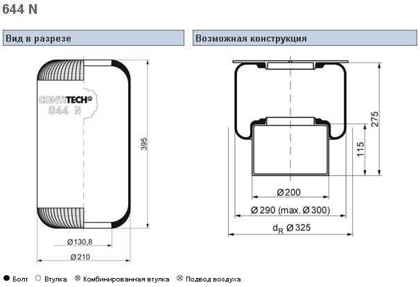 Пневморессора 644N цил 395-210-130.8/130.8 BPW/Fruehauf...