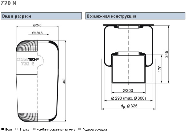 Пневморессора 720N кон 460-240-130.8/130.8 BPW/MB/MAN/N...