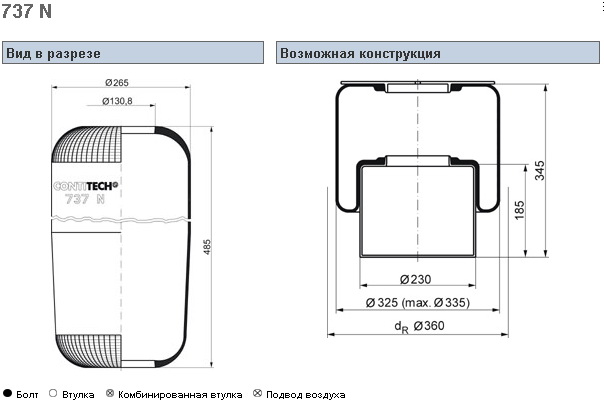 Пневморессора 737N кон 484-264-130.8/130.8 MB/IVECO