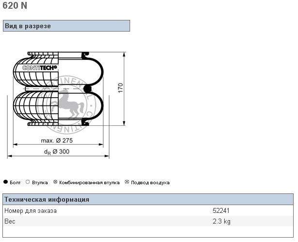 Пневморессора двойная 620N IVECO Magirus/BPW/MAN