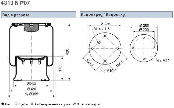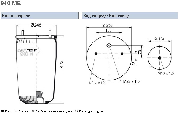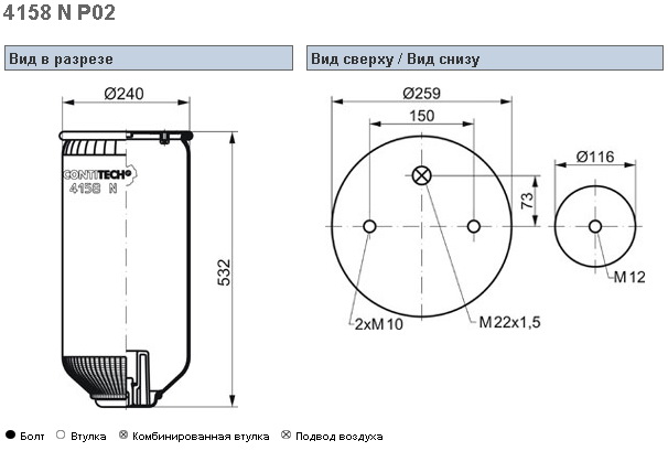 Пневморессора VOLVO FM/FH 6612NP01+ пер/ 2шп.М10х1.5 1ш...