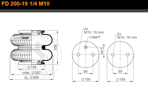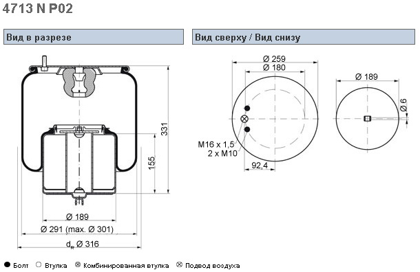 Пневморессора двойная 895N DAF/ROR/VO/Sсhmitz 2отв.M10...