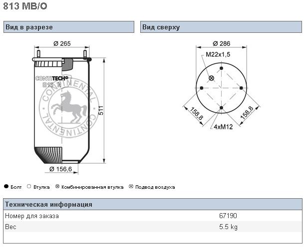 Пневморессора SAF/ROR/Trailor/VOLVO 813MB-