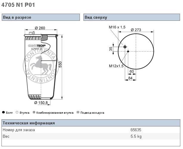 Пневморессора MAN TGA 4705N1P01-