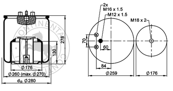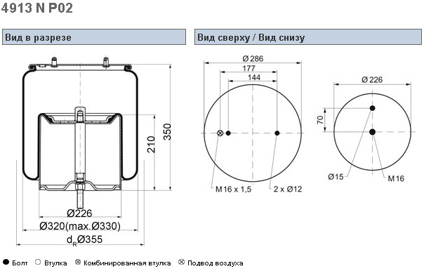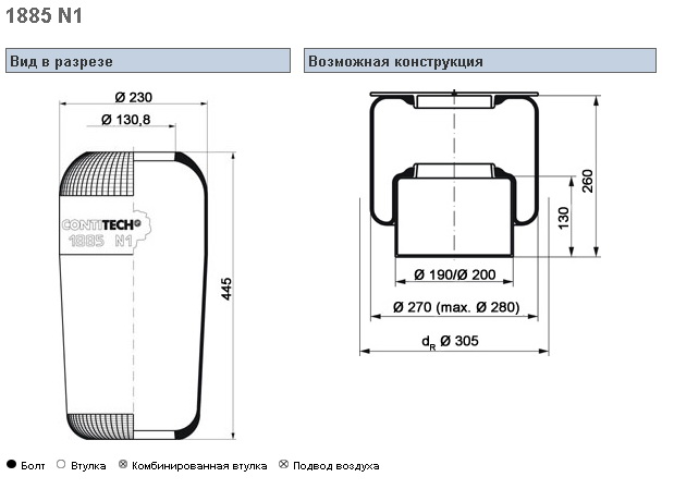 Пневморессора 1885 кон 444-230-130.8/130.8 MAN/MAZ