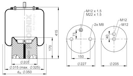 Пневморессора Schmitz 016512- 2шт.M8 1отв.-шт.M12/22 см...