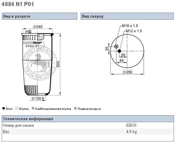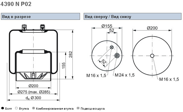 Пневморессора MAN TGA 4882N1P05+ зад/зад