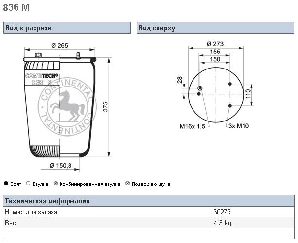 Пневморессора DAF 95XF 836M- без отбойника