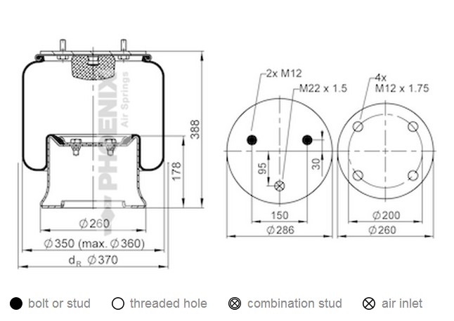 Пневморессора Schmitz 016512- 2шт.M8 1отв.-шт.M12/22 см...