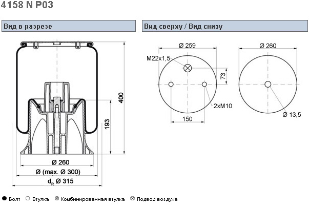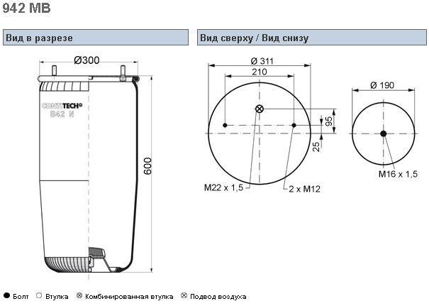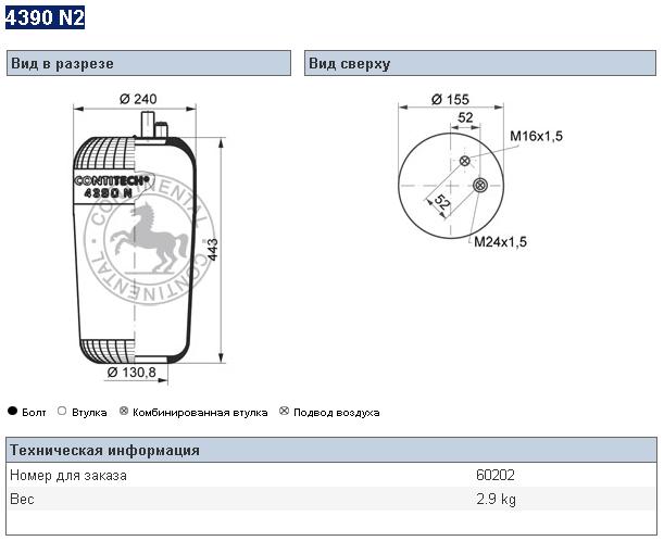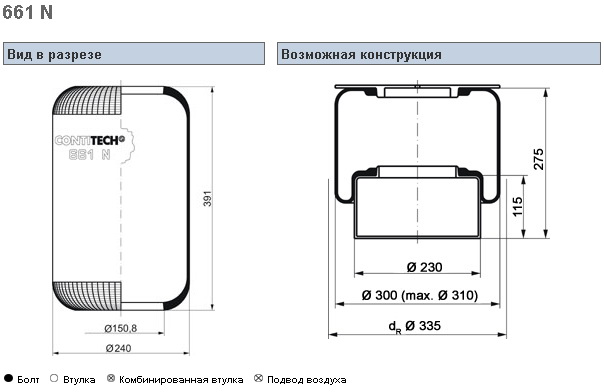 Пневморессора 661N цил 391-240-151.2/151.2 МАZ.MAN.Schm...