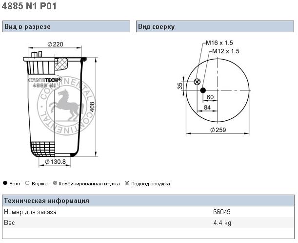 Пневморессора 673N кон 370-240-130.8/130.8 MB,SCANIA,VO...