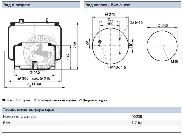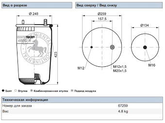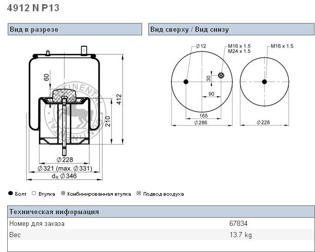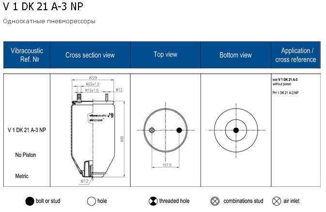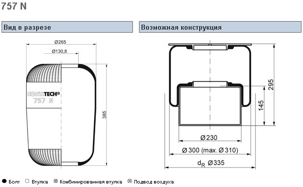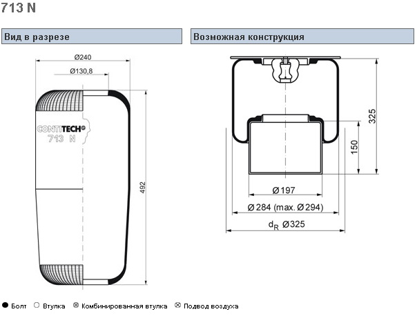 Пневморессора 713N кон 492-240-130.8/130.8 подъем оси V...