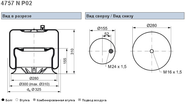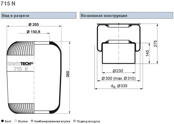 Пневморессора 715N кон 350-260-150.8/150.8 MAN/SCANIA/D...