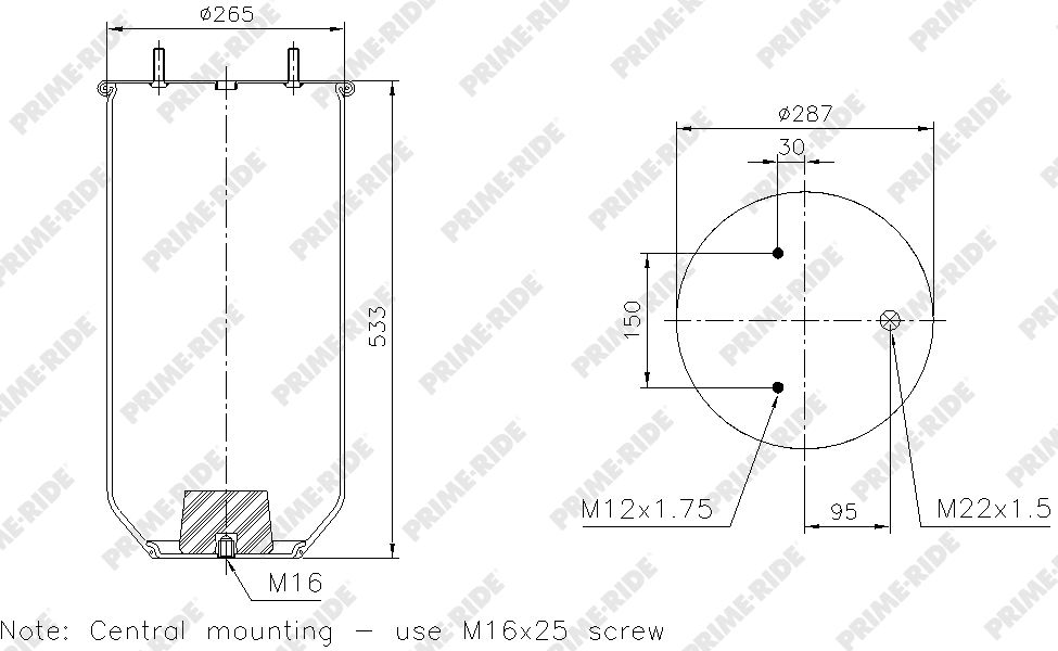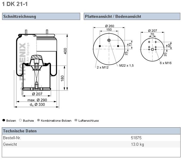 Пневморессора Schmitz 016512- 2шт.M8 1отв.-шт.M12/22 см...