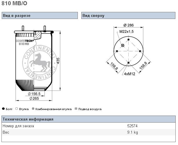 Пневморессора SAF/ROR/Trailor/VOLVO 810MB+