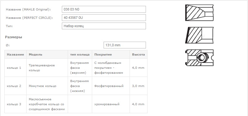 Кольца поршневые MAN D2865/66 d128 3.5x3x5 /6 x1