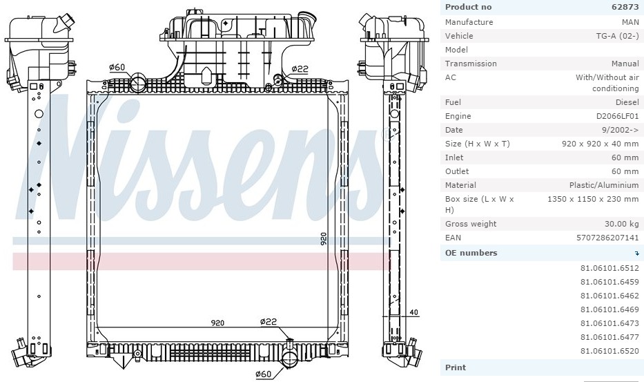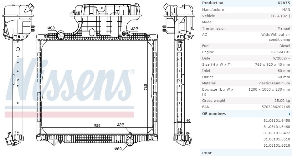 Радиатор системы охлаждения MAN TGA >00 TGS/TGX >07 938...