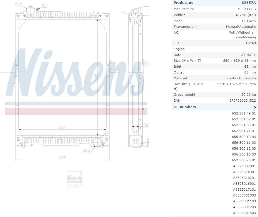 Радиатор системы охлаждения MERCEDES SK/MK/NG 850x639x4...