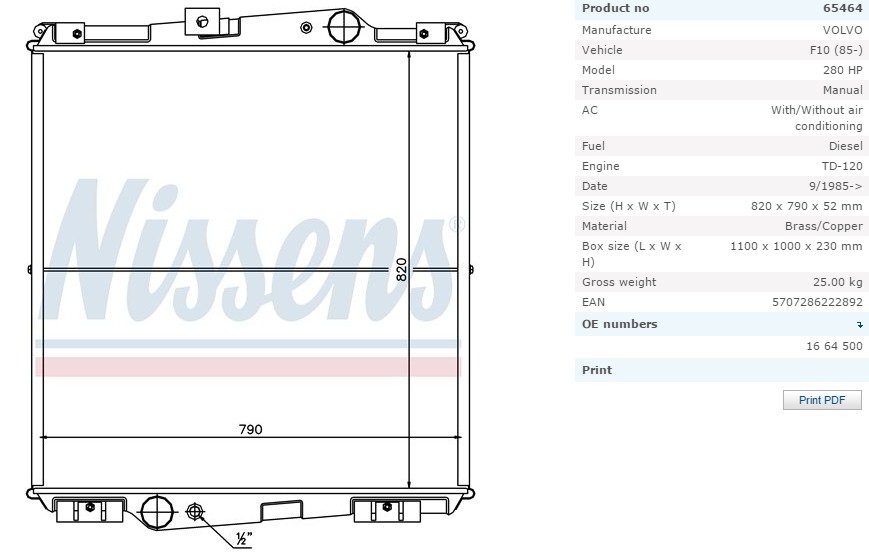 Радиатор системы охлаждения VOLVO F10/F12 790x820x52