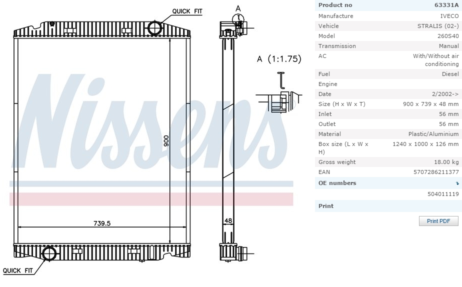 Радиатор системы охлаждения IVECO Stralis 260S40/43, 44...