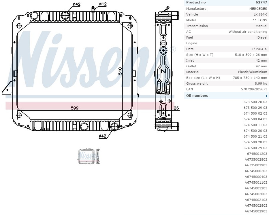 Радиатор системы охлаждения MERCEDES Actros 808x902x42
