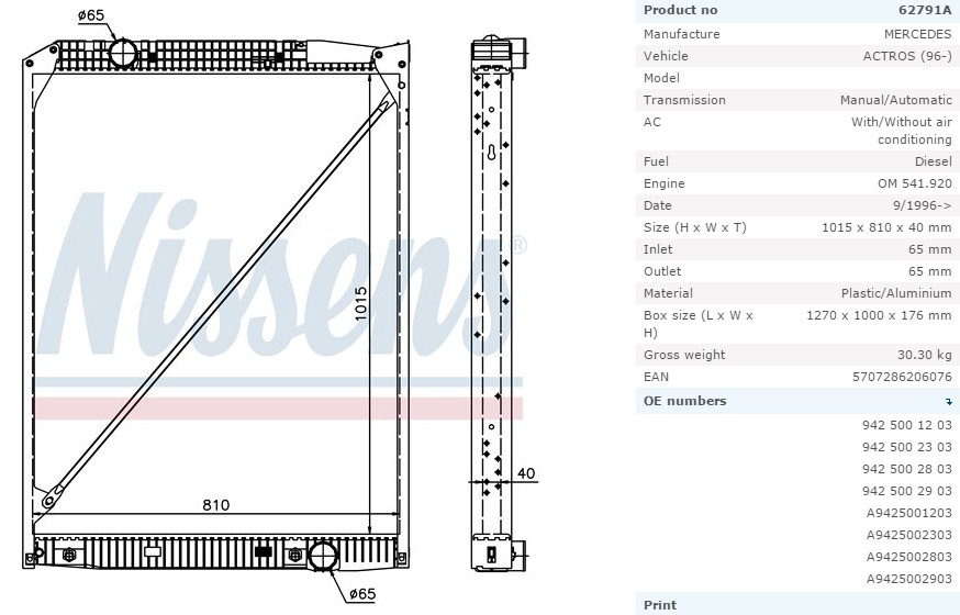 Радиатор системы охлаждения MERCEDES Actros 808x1015x42...