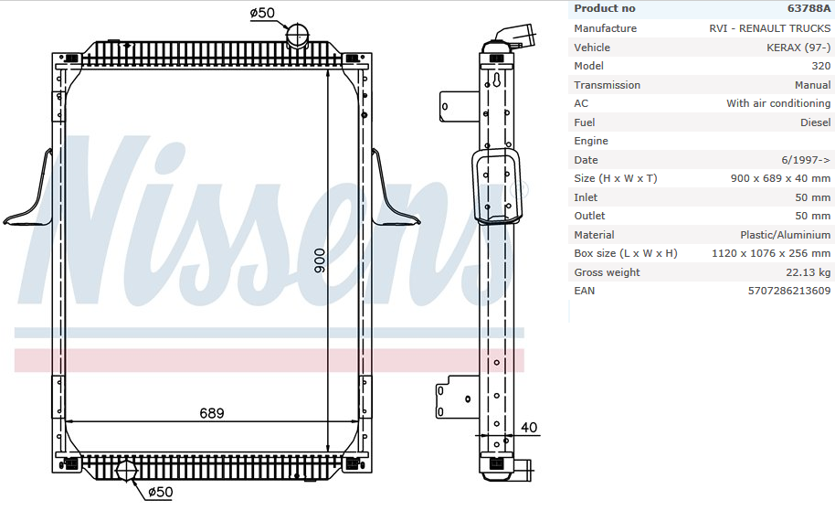 Радиатор системы охлаждения RVI Kerax/MAZ 900x708x53