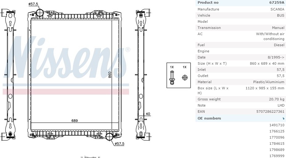Радиатор системы охлаждения SCANIA P-Series 800x689x40...