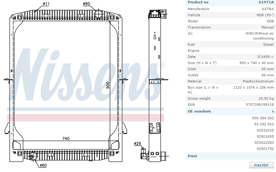 Радиатор системы охлаждения IVECO Eurostar/Tech 900x740...