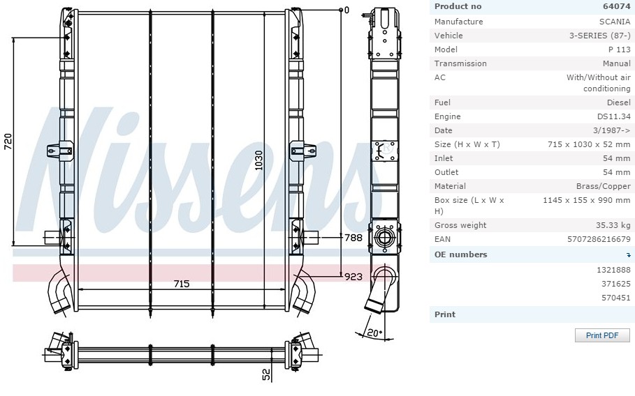 Радиатор системы охлаждения SCANIA 92/143 --> 01/89 715...