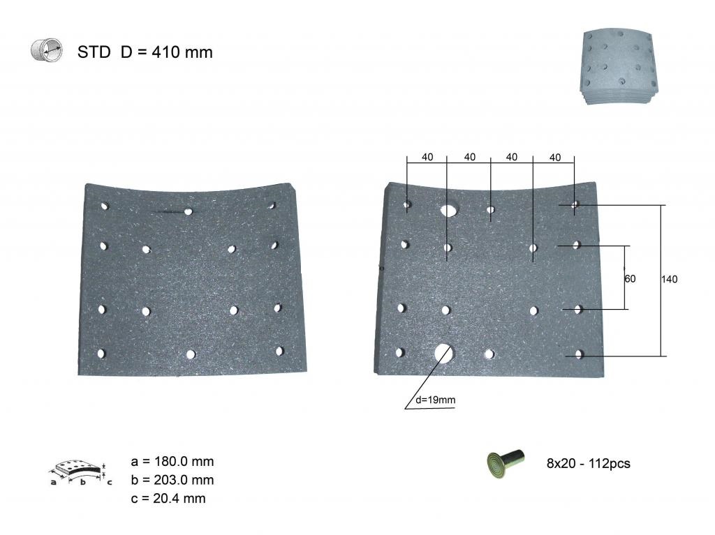 Накладки тормозные IVECO Eurotech/Star 410x180 (закл. 8...