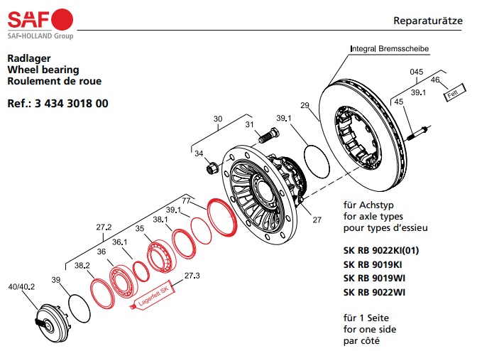 Ремкомплект ступицы SAF INTEGRAL BI9-19/22 06>
