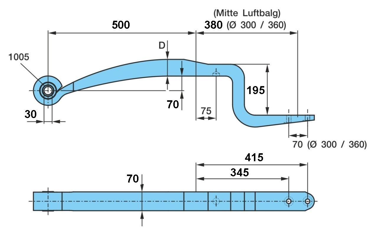 Полурессора BPW K=195mm, 1x56/70mm, L1/L2 500/380mm